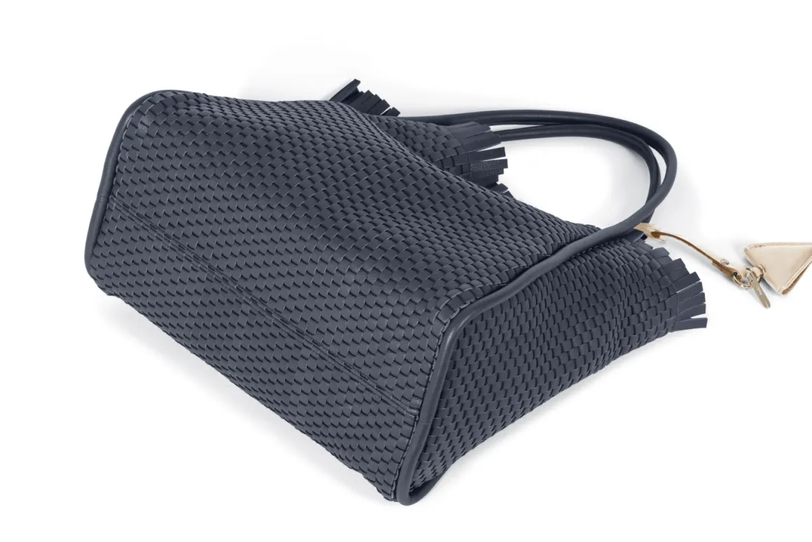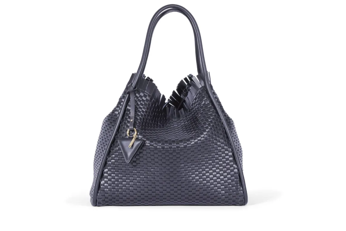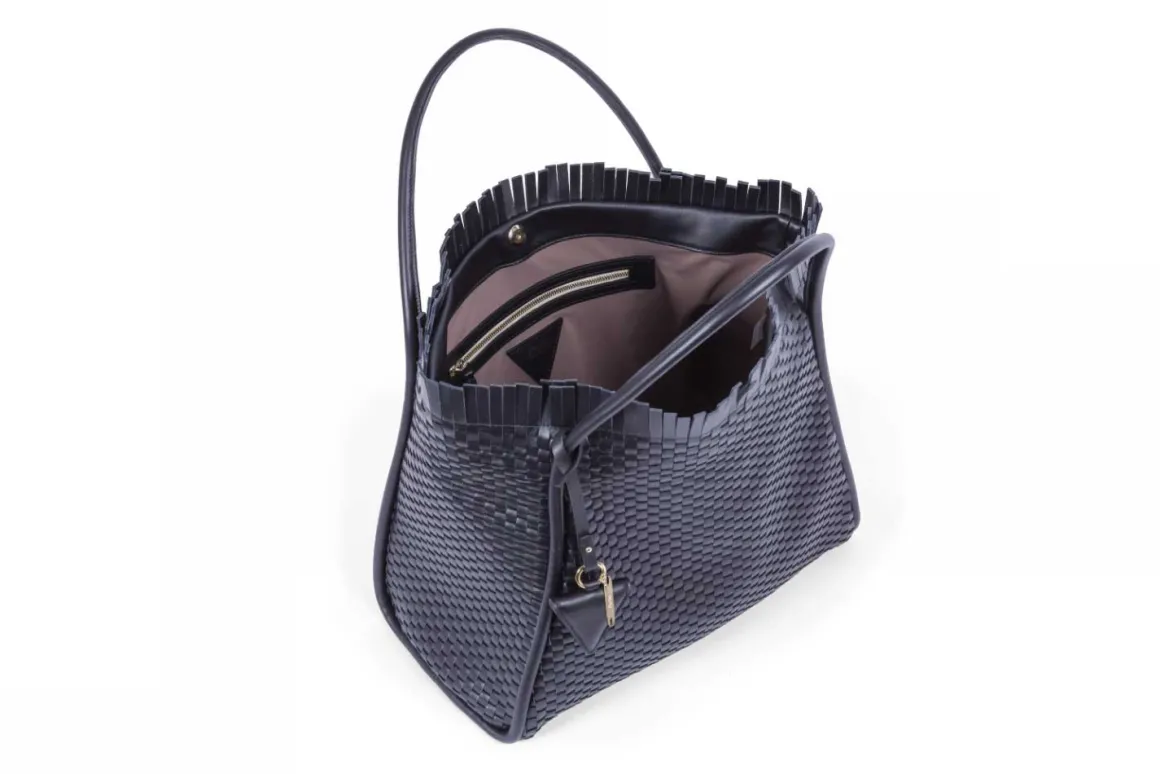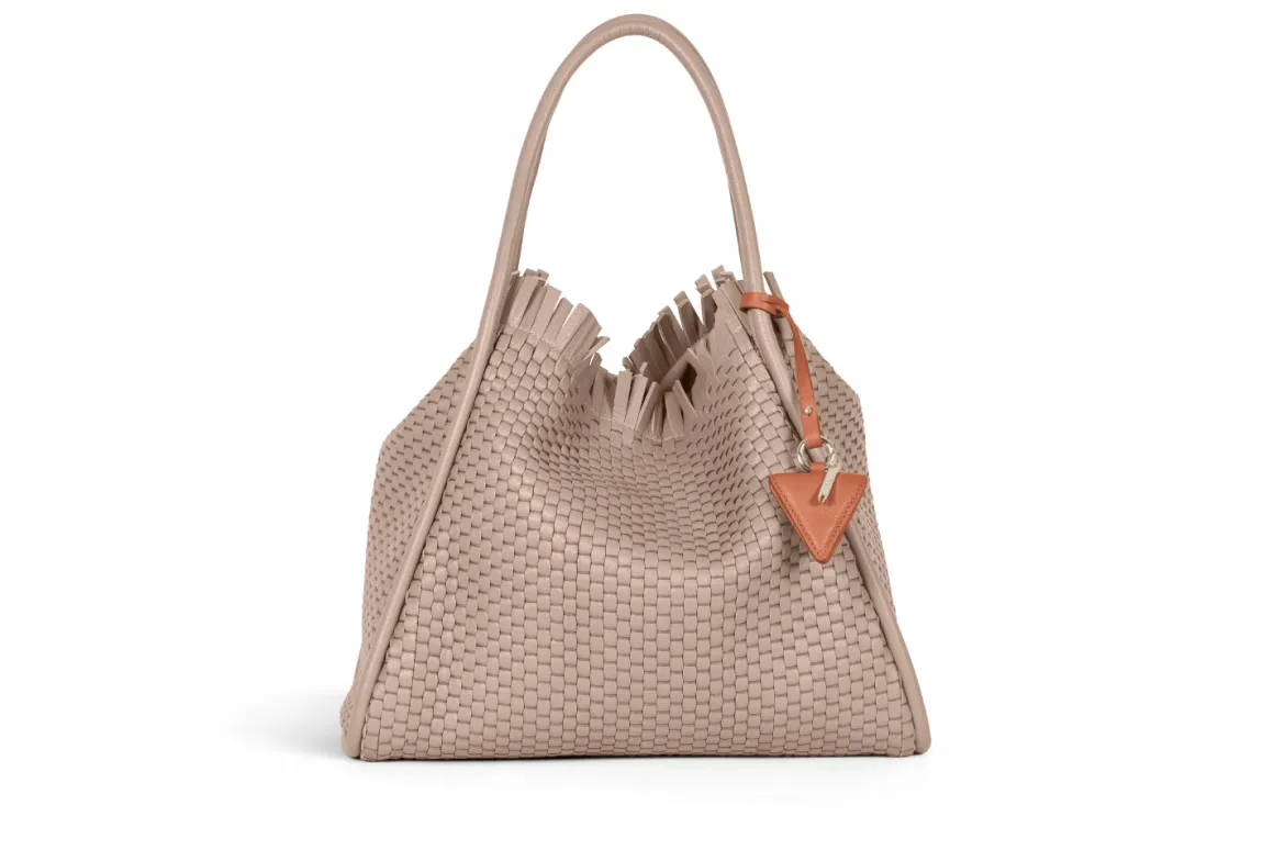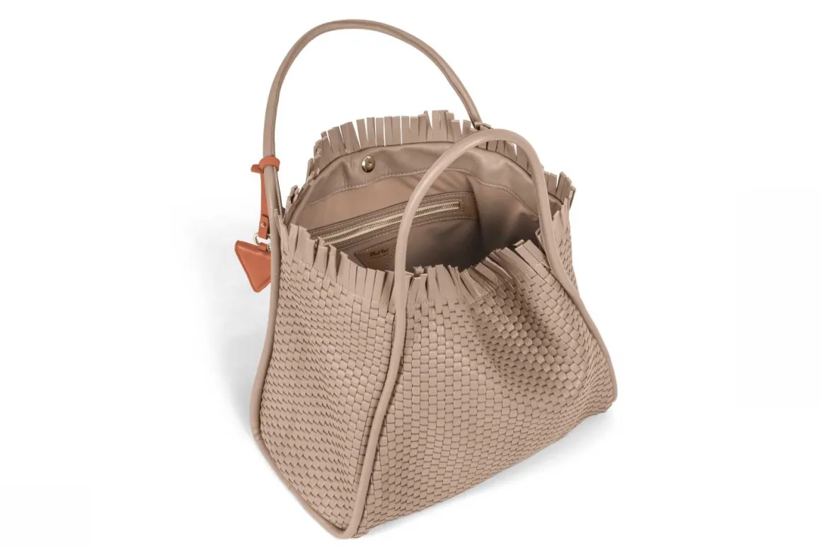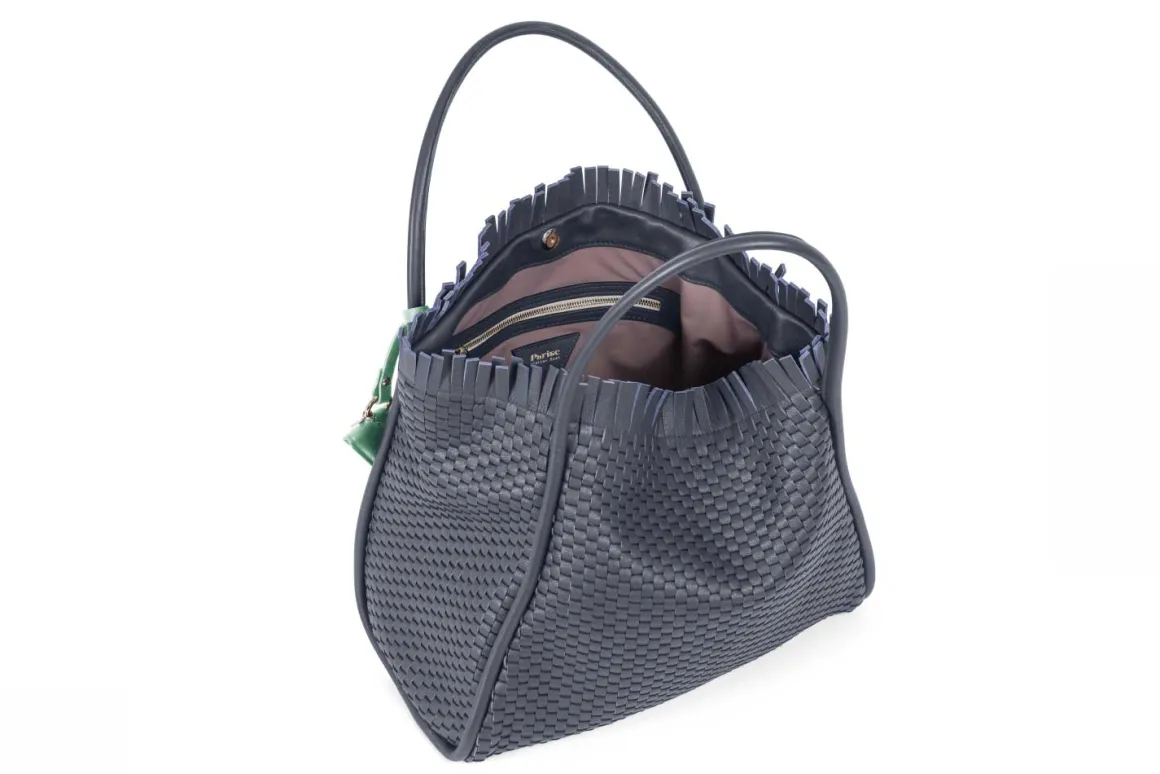 - Double leather crossed top handles for that extra flair